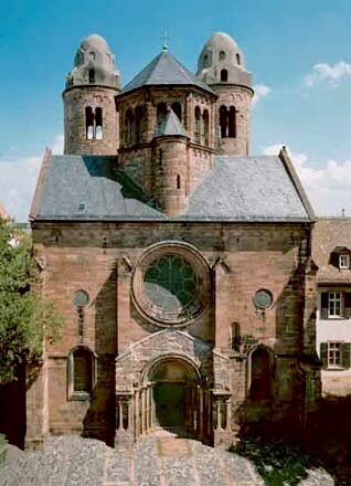 Das Westwerk des ehemaliges Stiftes St. Paul, der heutigen Dominikanerkirche, ist um 1260 entstanden. Im Jahr 1881 wurde St. Paul dann für einige Jahrzehnte zum Museum der Stadt Worms. Damals wurde die heutige Portalanlage um die Flügeltür von Lorenz Gedon ergänzt. Diese Tür ist aus Eisenguss und eine verkleinerte Kopie der Hildesheimer Bernwardstür (Dom). Es fehlen auf jeder Seite die drei oberen Felder. 1015 ließ Bischof Bernward die 4,72 m hohen Flügel in Bronze gießen. Den Szenen des Alten Testamentes (linker Flügel) korrespondieren solche des Neuen Testamentes (rechter Flügel).